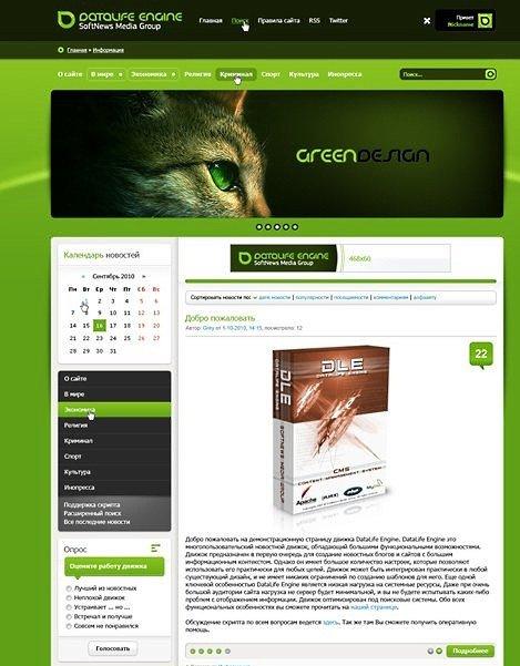 По заказу разработчика DataLife Engine разработан шаблон с названием Pisces для базового пакета системы. Цветовая гамма шаблона: серый, зеленый и белый. В дизайне преобладают яркие тона. Фон яркий, однотонный, для оформления шапки фон декорирован дугой с эффектом свечения. Для шаблона разработан логотип и шаблон с интеграцией DataLife Engine Особенности: две колонки, слайдер в шапке, модификации оформления блоков, горизонтальное выпадающее меню, вертикальное меню, блок календарь, авторизация на jQuery, облако тегов в футере, места для рекламы и счетчиков, дублирование элементов меню в футере, иконки для оформления элементов новостей.